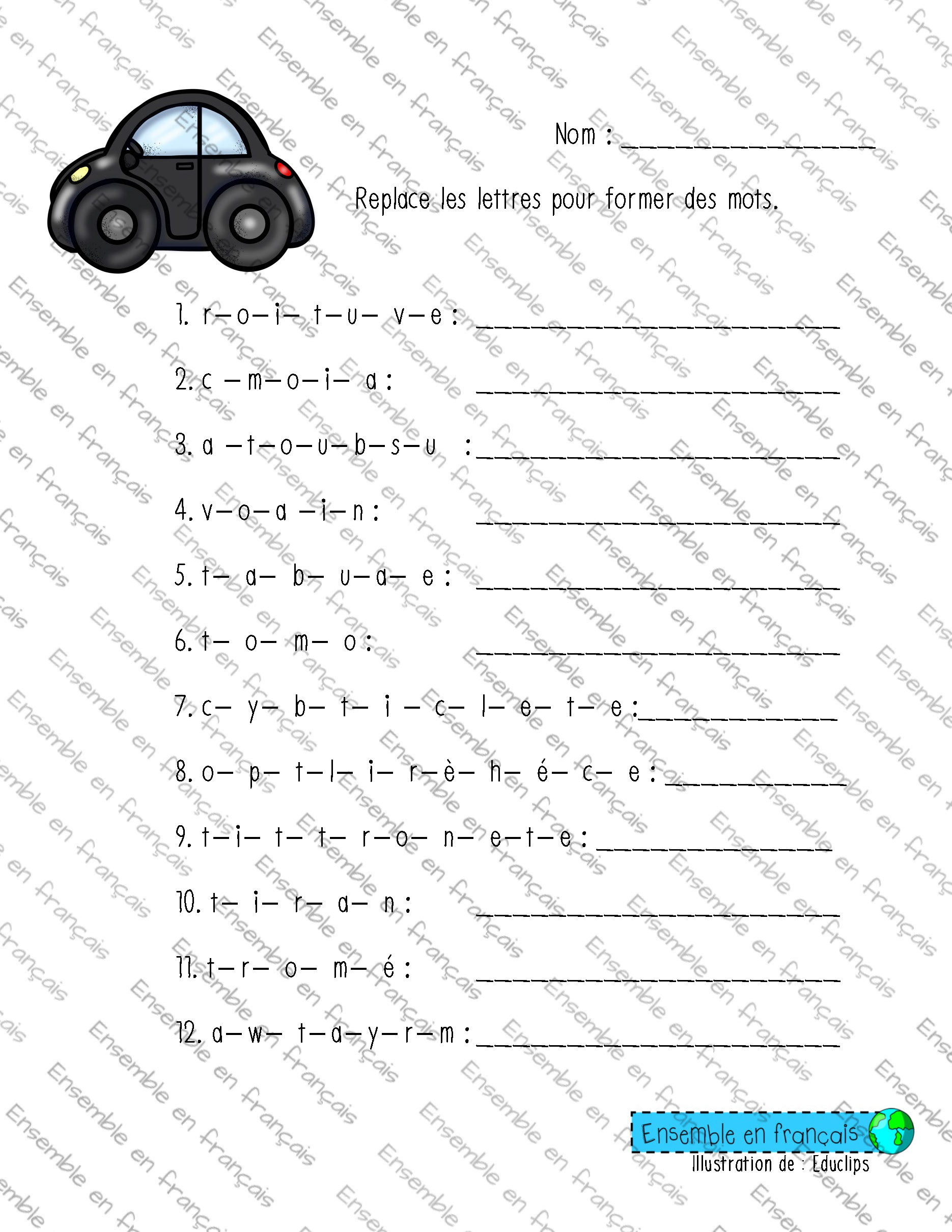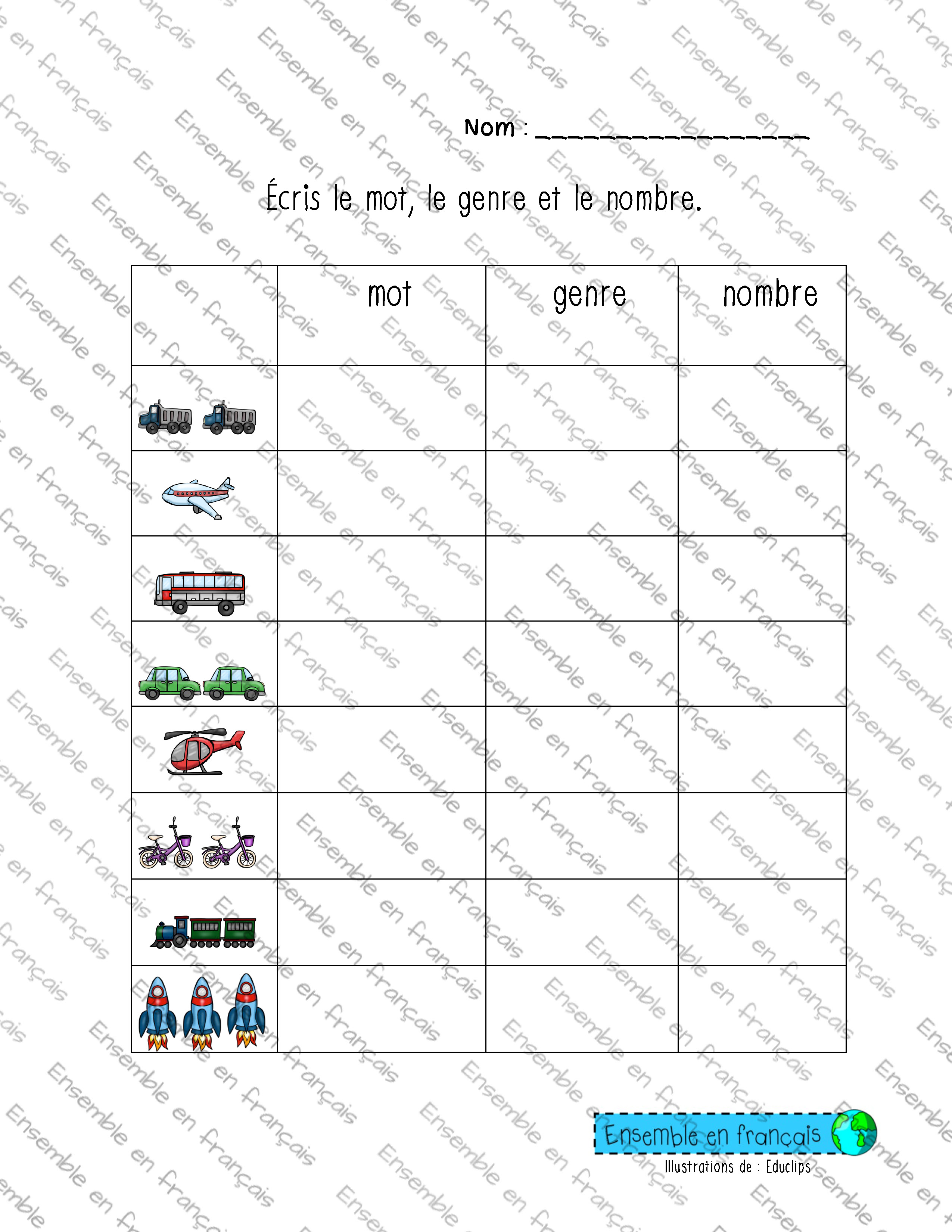 Galerie Écris le mot, le genre et le nombre – av 29. Les transports, Avancé Écris le mot, le genre et le nombre – av Télécharger ensembleenfrancais-admin 2019-10-31T14:24:14-04:00 29. Les transports, Avancé|
