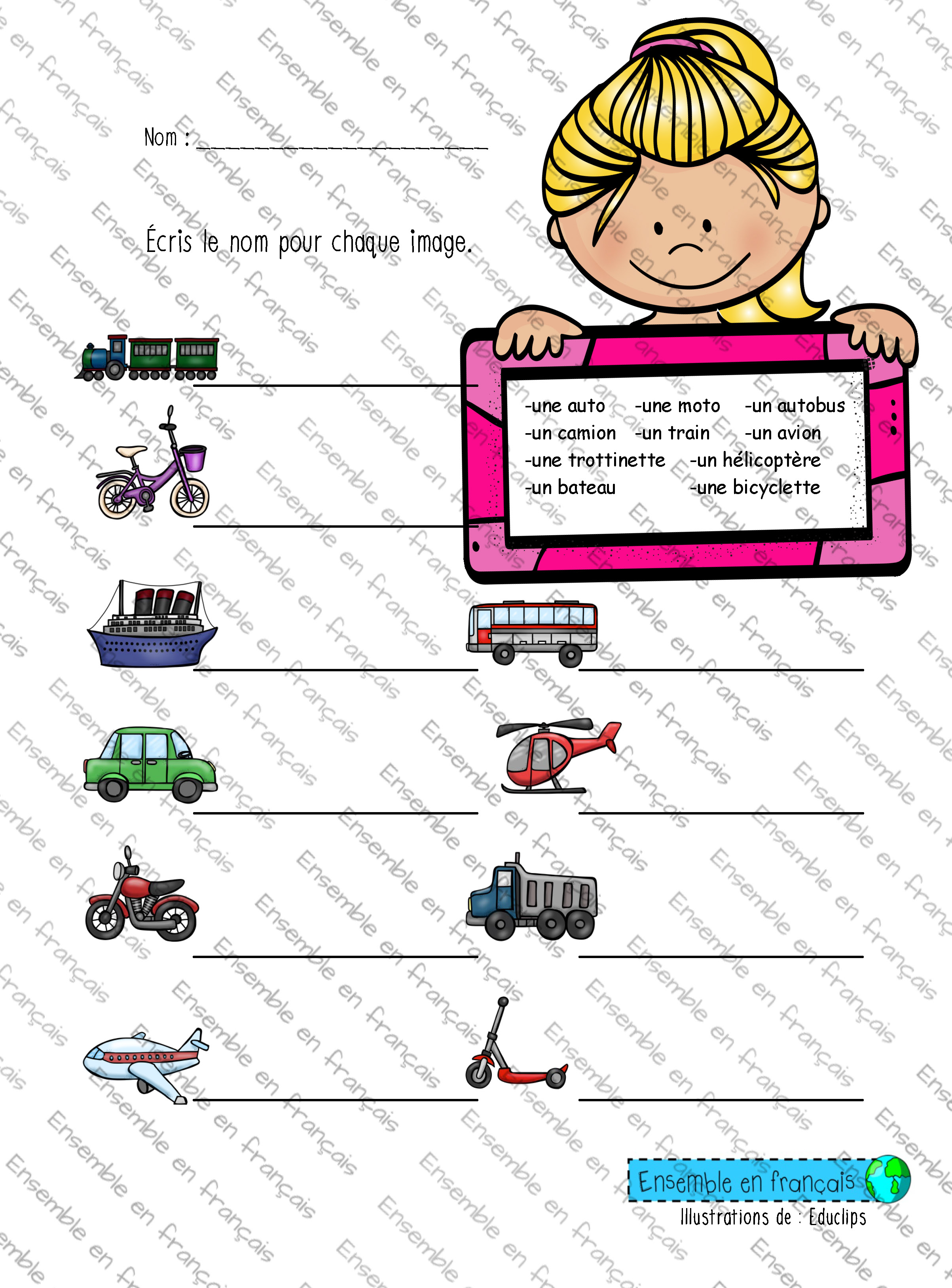 Galerie Écris le nom pour chaque image – transports 29. Les transports, Intermédiaire Écris le nom pour chaque image – transports Télécharger ensembleenfrancais-admin 2019-10-31T14:26:31-04:00 29. Les transports, Intermédiaire|