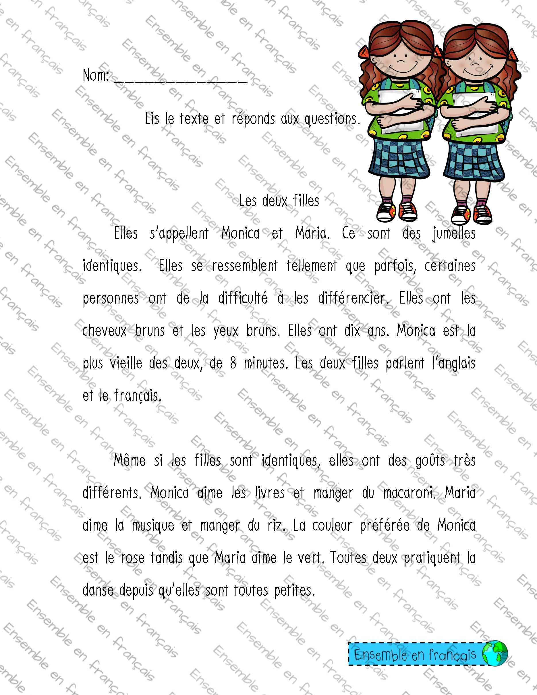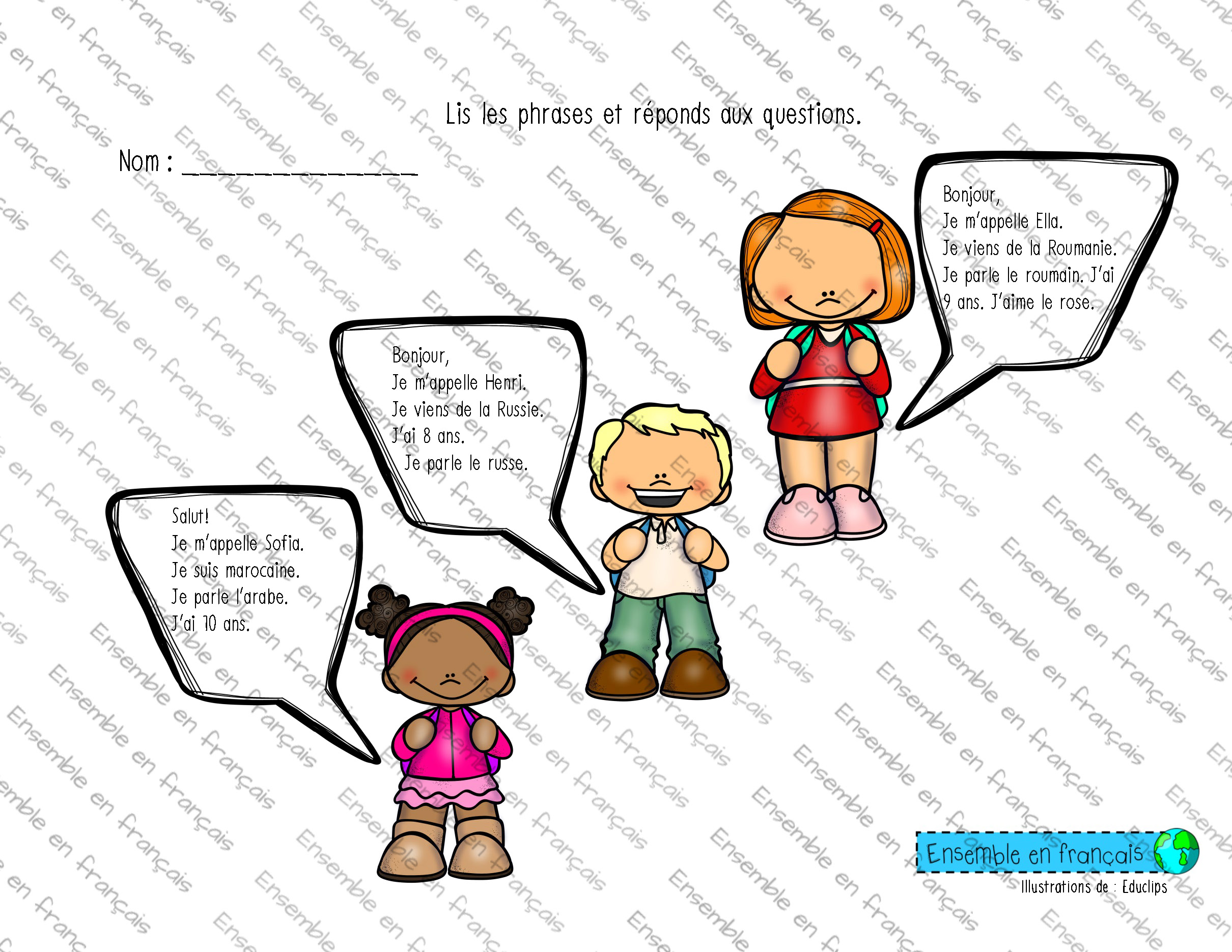 Galerie Lis le texte et réponds aux questions 01. Bonjour, Intermédiaire Lis le texte et réponds aux questions Télécharger ensembleenfrancais-admin 2019-08-19T15:12:54-05:00 01. Bonjour, Intermédiaire|