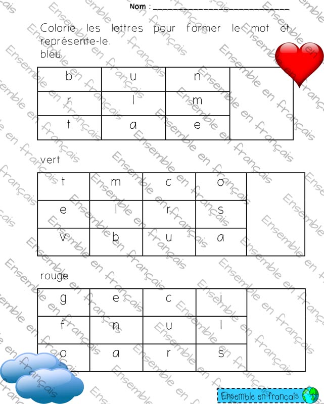 Galerie Colorie les lettres pour former le mot 00. Les couleurs, Débutant Colorie les lettres pour former le mot Télécharger ensembleenfrancais-admin 2019-08-07T11:11:38-05:00 00. Les couleurs, Débutant|