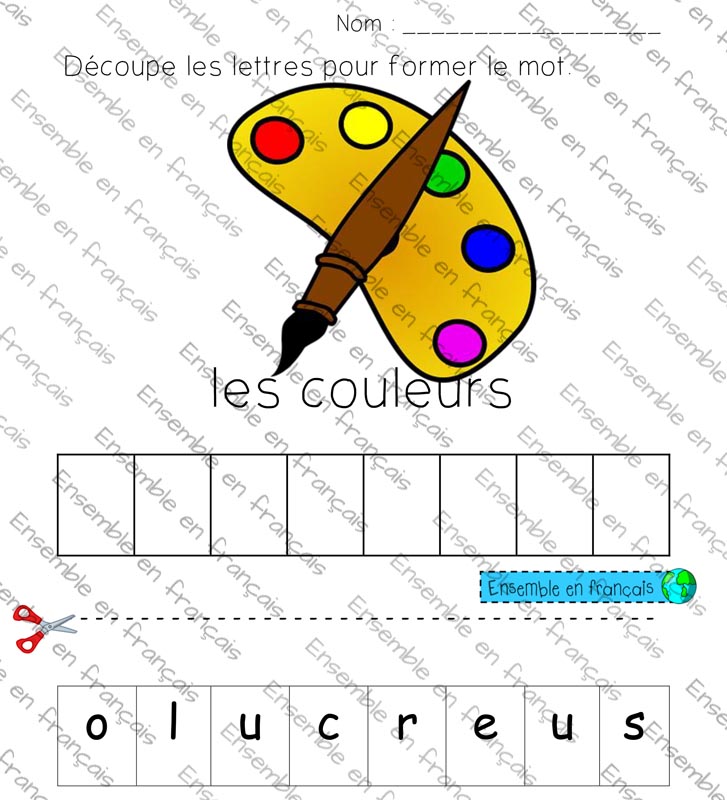 Galerie Découpe les lettres pour former le mot 00. Les couleurs, Débutant Découpe les lettres pour former le mot Télécharger ensembleenfrancais-admin 2019-08-07T11:14:13-05:00 00. Les couleurs, Débutant|