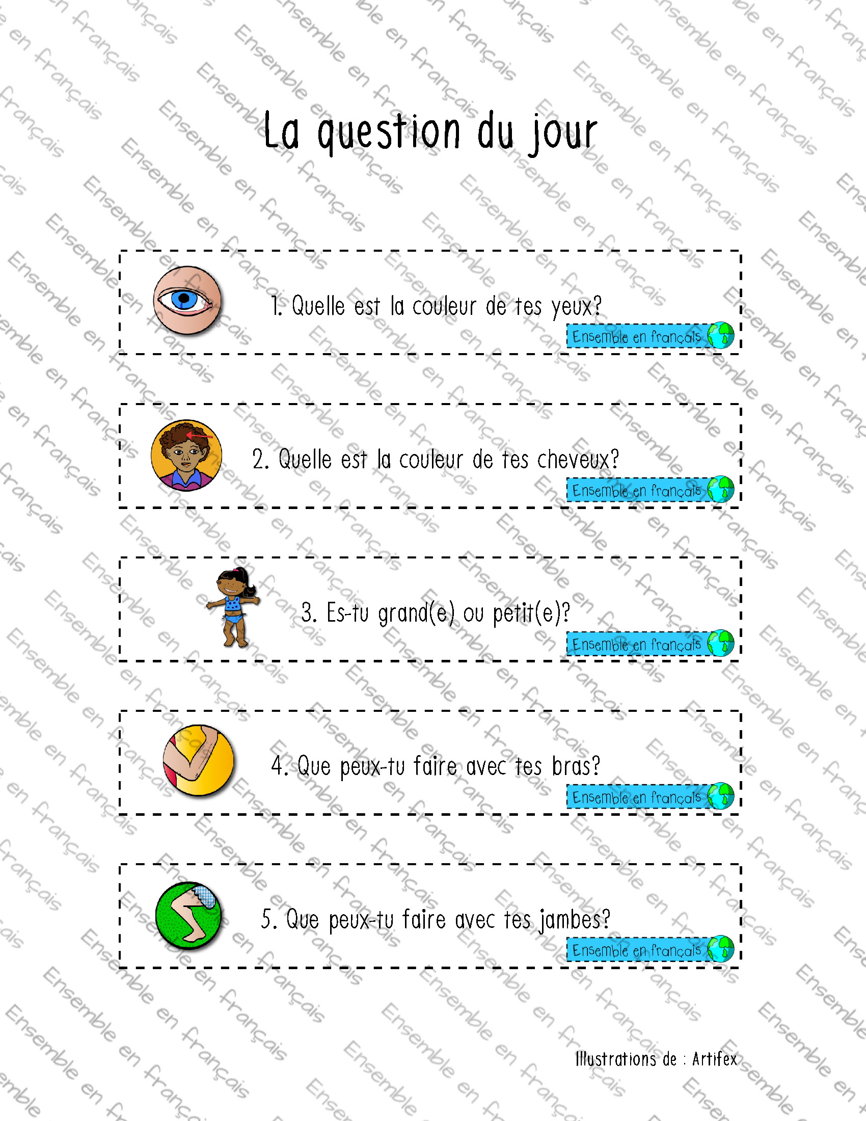 Galerie La question du jour – corps 10. Corps humain, Débutant La question du jour – corps Télécharger ensembleenfrancais-admin 2019-09-16T10:04:49-05:00 10. Corps humain, Débutant|
