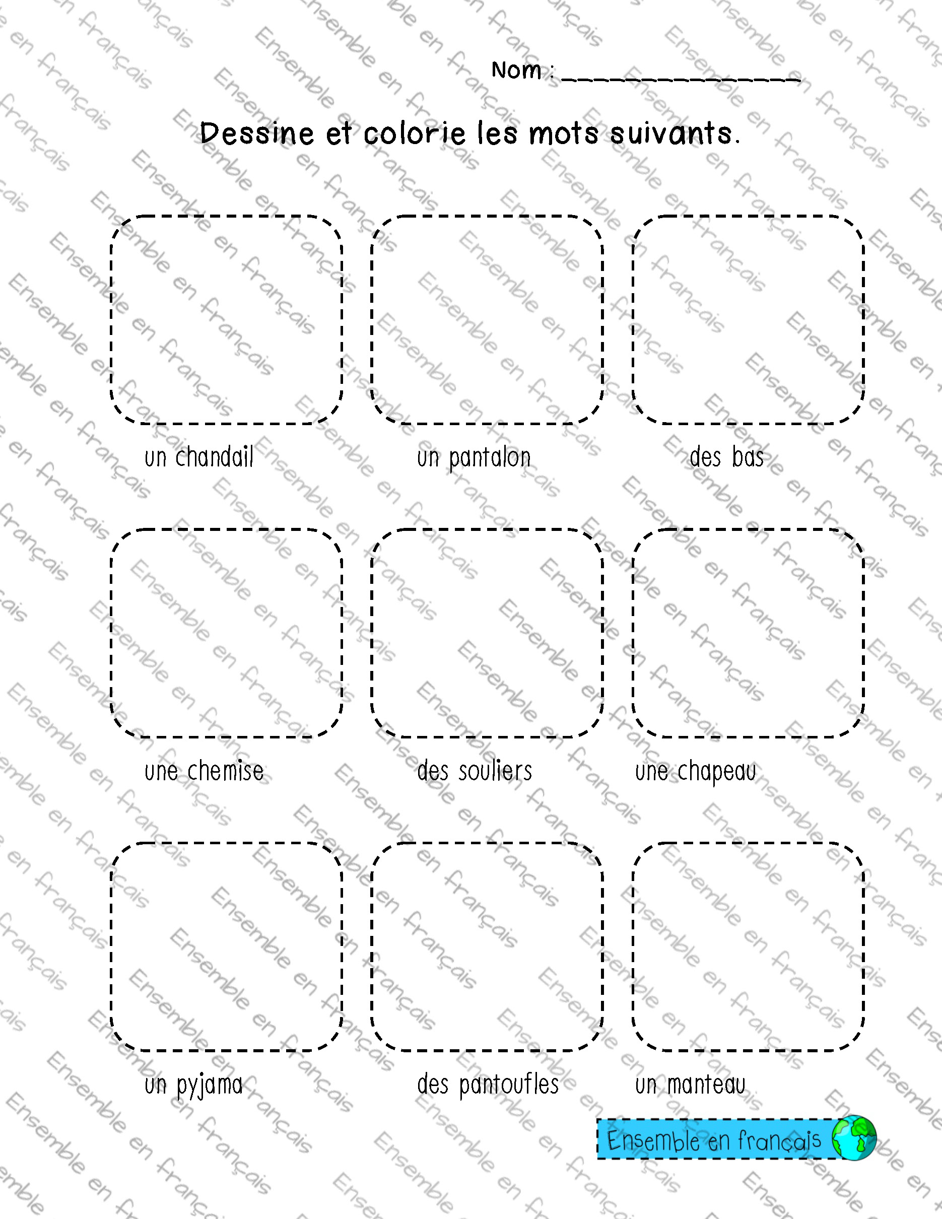 Galerie Dessine et colorie les mots suivants -vêtement 11. Vêtements, Débutant Dessine et colorie les mots suivants -vêtement Télécharger ensembleenfrancais-admin 2019-12-16T14:26:20-05:00 11. Vêtements, Débutant|