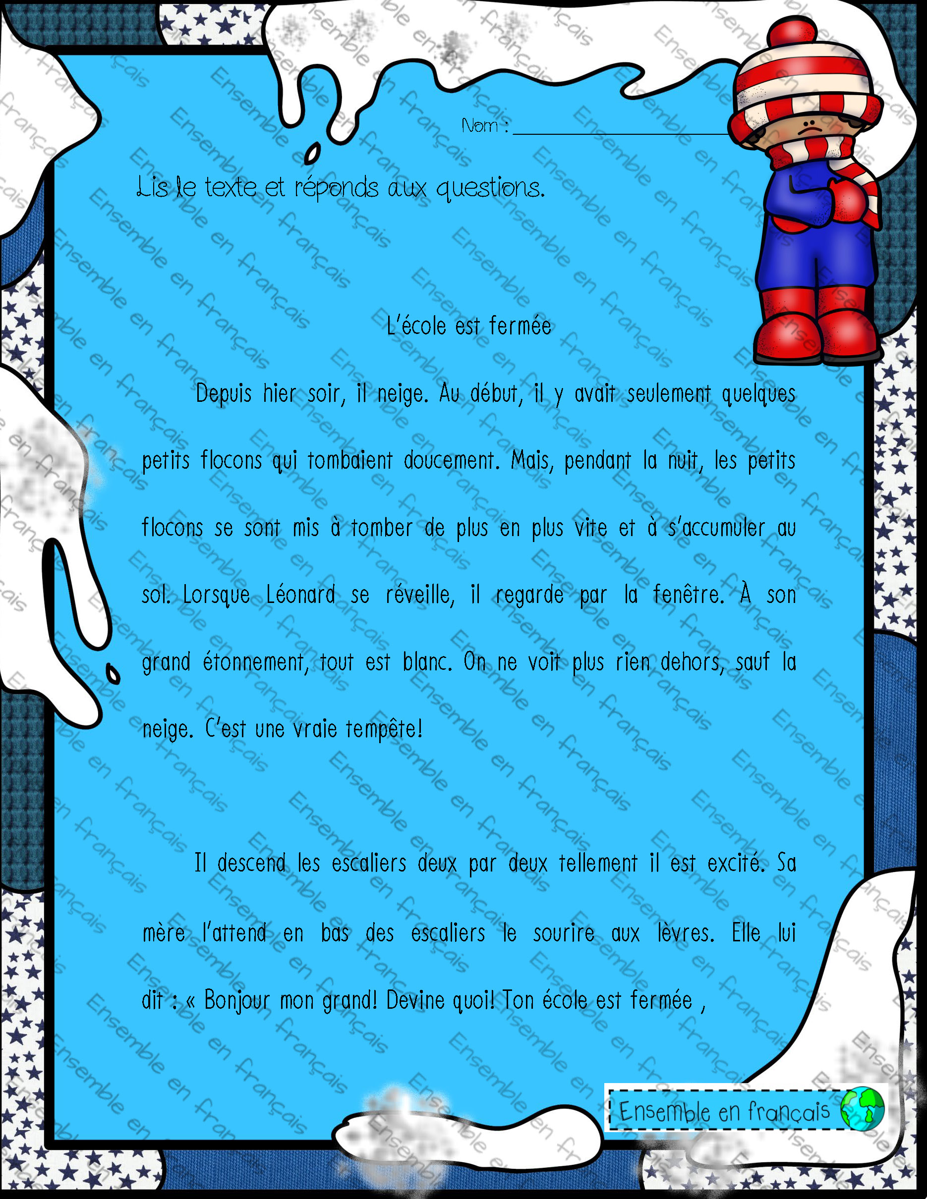 Galerie Lecture – L’école est fermée 12. Hiver, Avancé Lecture – L’école est fermée Télécharger ensembleenfrancais-admin 2019-07-12T18:23:36-05:00 12. Hiver, Avancé|