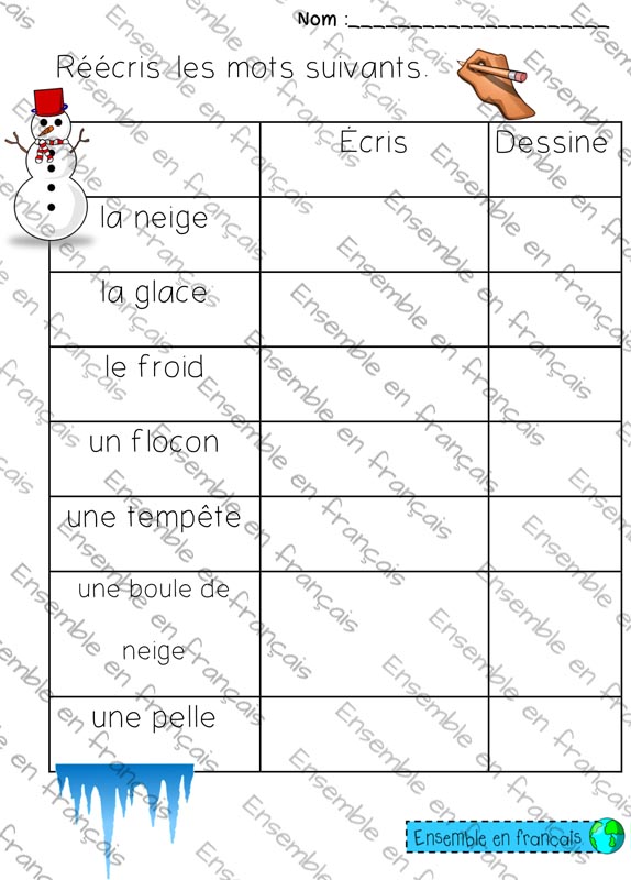 Galerie Réécris les mots suivants 12. Hiver, Débutant Réécris les mots suivants Télécharger ensembleenfrancais-admin 2019-07-12T16:55:47-05:00 12. Hiver, Débutant|
