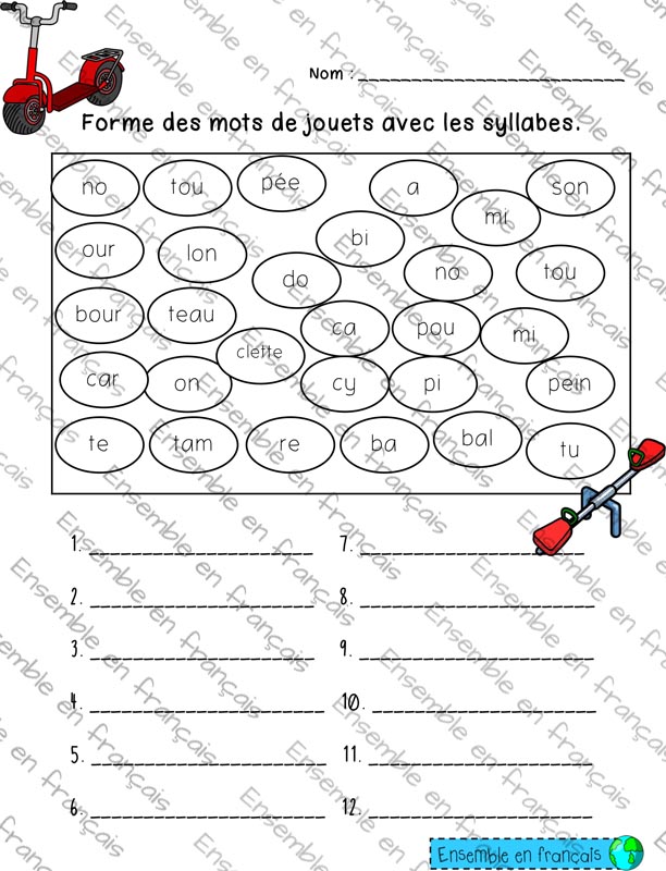 Galerie Forme des mots de jouets avec les syllabes 13. Jouets, Intermédiaire Forme des mots de jouets avec les syllabes Télécharger ensembleenfrancais-admin 2019-07-14T09:51:42-05:00 13. Jouets, Intermédiaire|