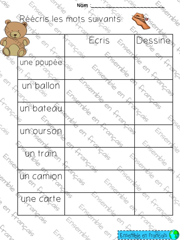 Galerie Réécris les mots suivants 13. Jouets, Débutant Réécris les mots suivants Télécharger ensembleenfrancais-admin 2019-07-14T09:44:53-05:00 13. Jouets, Débutant|