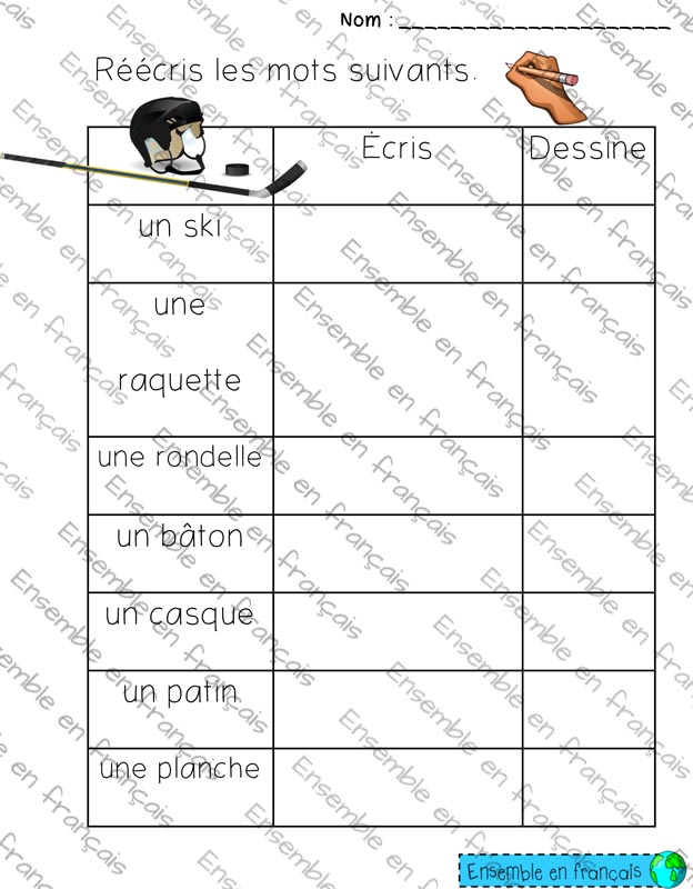Galerie Réécris les mots suivants 15. Sport d'hiver, Débutant Réécris les mots suivants Télécharger ensembleenfrancais-admin 2019-07-13T16:56:16-05:00 15. Sport d'hiver, Débutant|