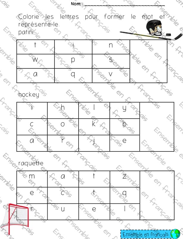 Galerie Colorie les lettres pour former le mot 15. Sport d'hiver, Débutant Colorie les lettres pour former le mot Télécharger ensembleenfrancais-admin 2019-07-13T07:54:36-05:00 15. Sport d'hiver, Débutant|