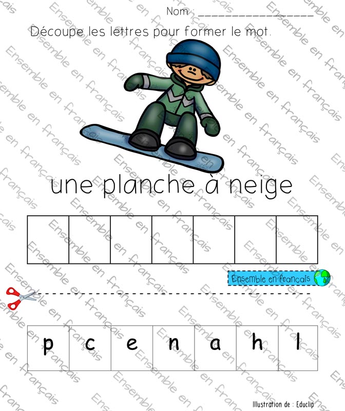 Galerie Découpe les lettres pour former le mot – planche à neige 15. Sport d'hiver, Débutant Découpe les lettres pour former le mot – planche à neige Télécharger ensembleenfrancais-admin 2019-07-13T07:55:33-05:00 15. Sport d'hiver, Débutant|