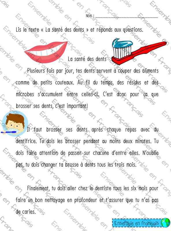 Galerie Lecture inter – La santé des dents 16. Santé, Intermédiaire Lecture inter – La santé des dents Télécharger ensembleenfrancais-admin 2019-07-15T09:10:43-05:00 16. Santé, Intermédiaire|