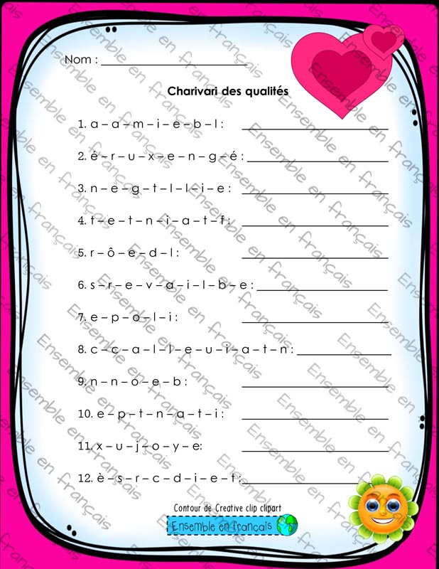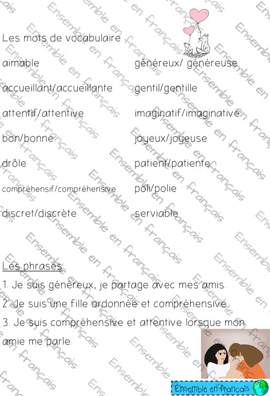 Galerie Liste de mots de vocabulaire – Les qualités 17. Saint-Valentin, Intermédiaire Liste de mots de vocabulaire – Les qualités Télécharger ensembleenfrancais-admin 2019-07-19T10:56:01-05:00 17. Saint-Valentin, Intermédiaire|