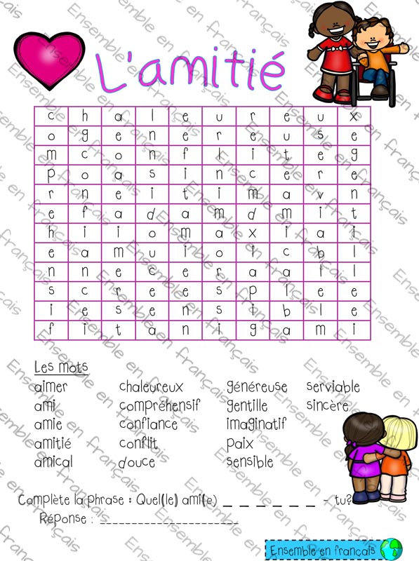 Galerie Mots cachés – L’amitié 17. Saint-Valentin, Intermédiaire Mots cachés – L’amitié Télécharger ensembleenfrancais-admin 2019-07-19T10:42:17-05:00 17. Saint-Valentin, Intermédiaire|