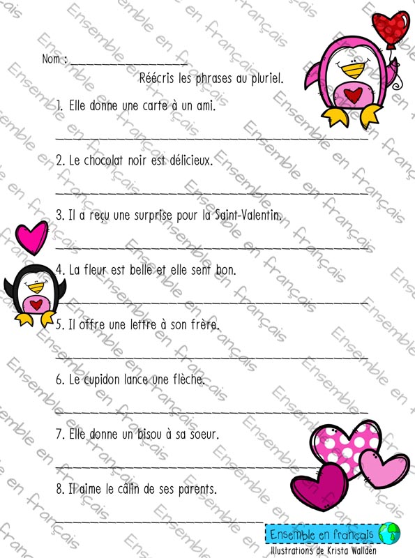 Galerie grammaire – Réécris les phrases au pluriel 17. Saint-Valentin, Avancé grammaire – Réécris les phrases au pluriel Télécharger ensembleenfrancais-admin 2019-07-15T14:05:16-05:00 17. Saint-Valentin, Avancé|
