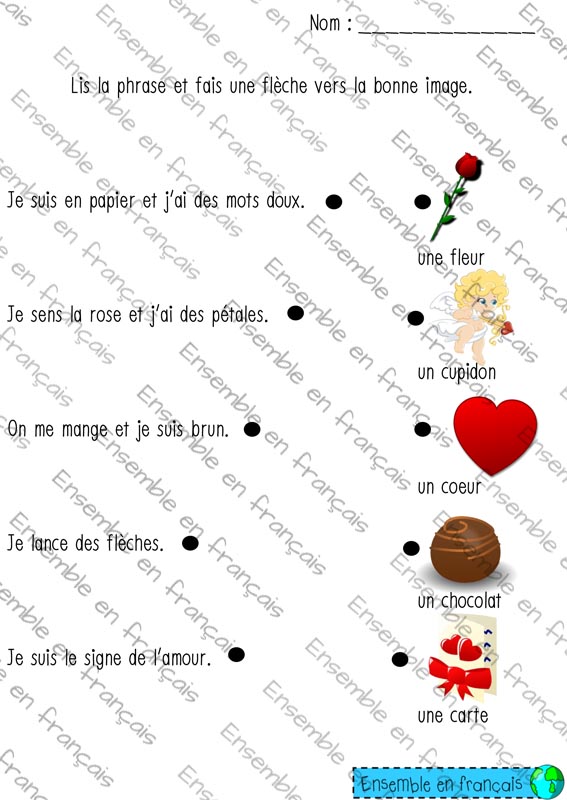 Galerie Lis la phrase et fais une flèche vers la bonne image 17. Saint-Valentin, Débutant Lis la phrase et fais une flèche vers la bonne image Télécharger ensembleenfrancais-admin 2019-07-15T10:51:17-05:00 17. Saint-Valentin, Débutant|