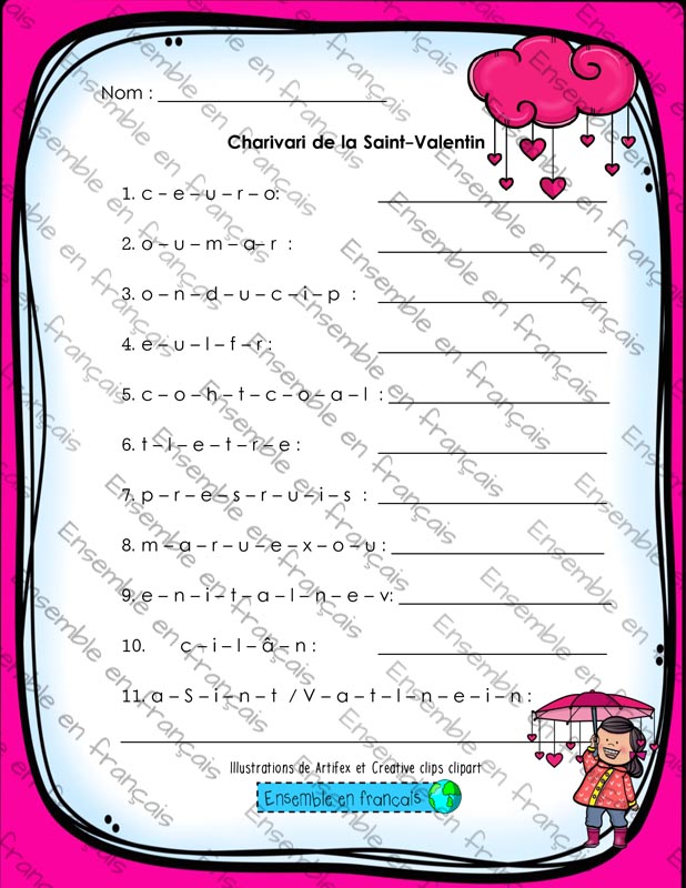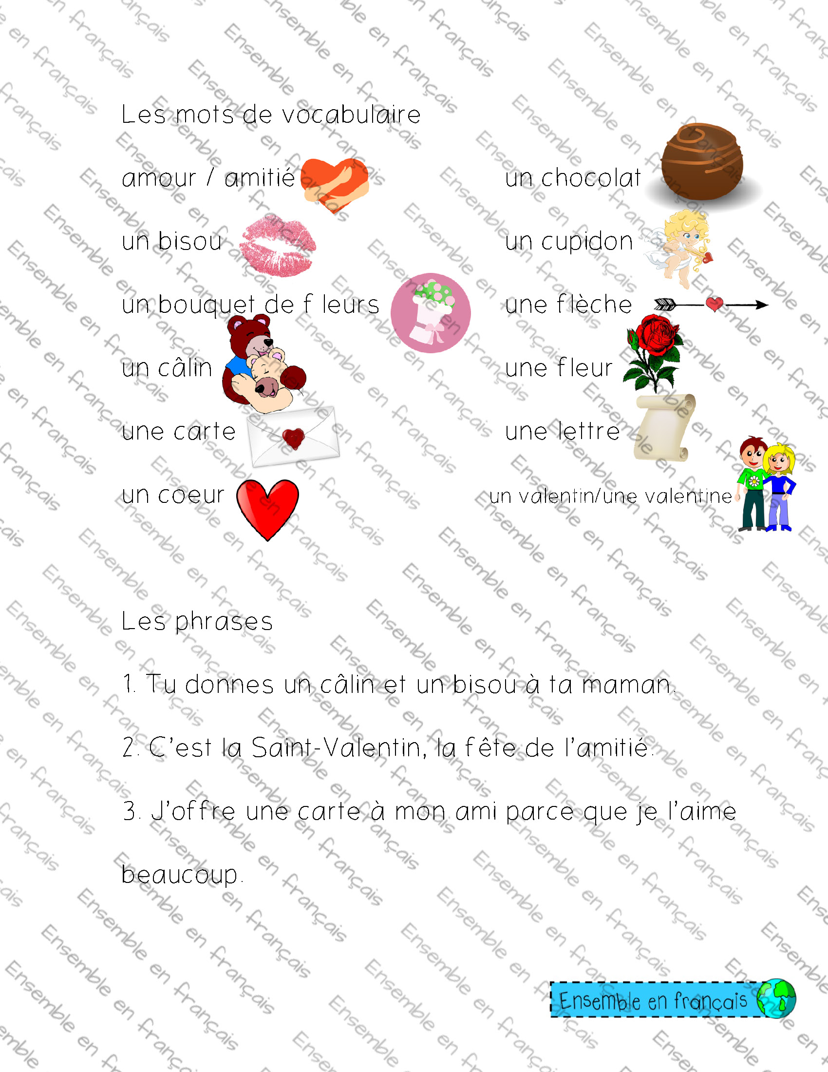 Galerie Liste de mots de vocabulaire – Saint-Valentin 17. Saint-Valentin, Intermédiaire Liste de mots de vocabulaire – Saint-Valentin Télécharger ensembleenfrancais-admin 2020-01-02T17:15:41-05:00 17. Saint-Valentin, Intermédiaire|
