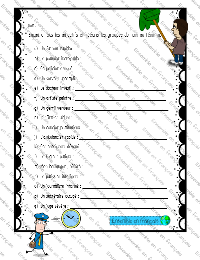 Galerie Écris les groupes du nom au féminin 18. Métiers, Avancé Écris les groupes du nom au féminin Télécharger ensembleenfrancais-admin 2022-02-22T12:19:38-05:00 18. Métiers, Avancé|