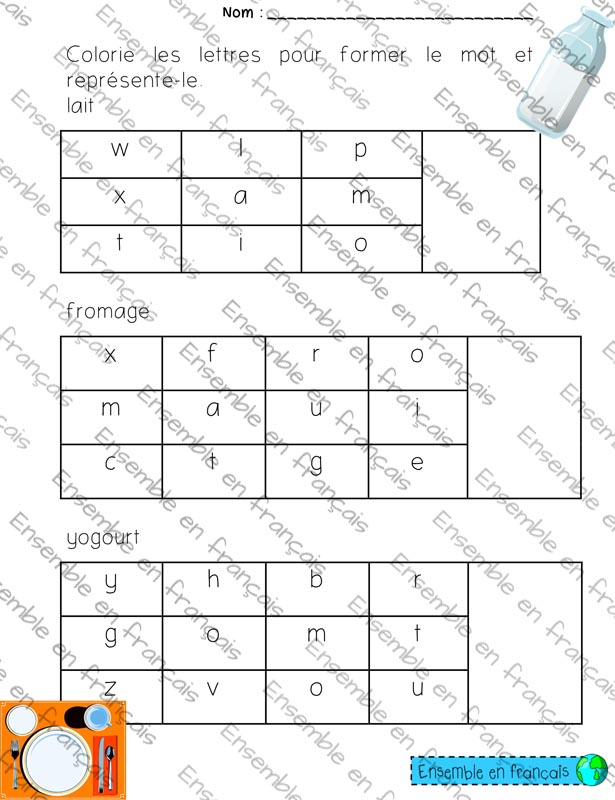 Galerie Colorie les lettres pour former le mot 19. Alimentation, Débutant Colorie les lettres pour former le mot Télécharger ensembleenfrancais-admin 2019-07-15T19:37:17-05:00 19. Alimentation, Débutant|