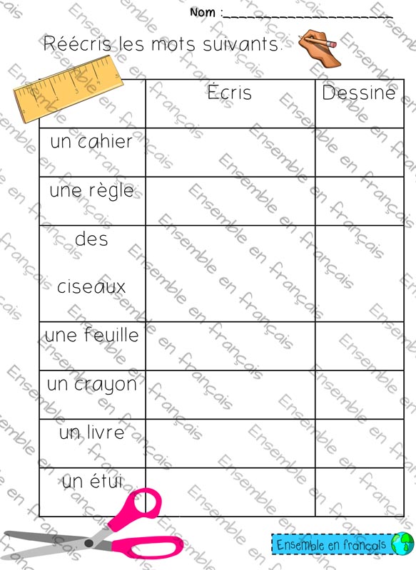 Galerie Réécris les mots suivants 02. Matériel scolaire, Débutant Réécris les mots suivants Télécharger ensembleenfrancais-admin 2019-07-08T13:40:16-05:00 02. Matériel scolaire, Débutant|