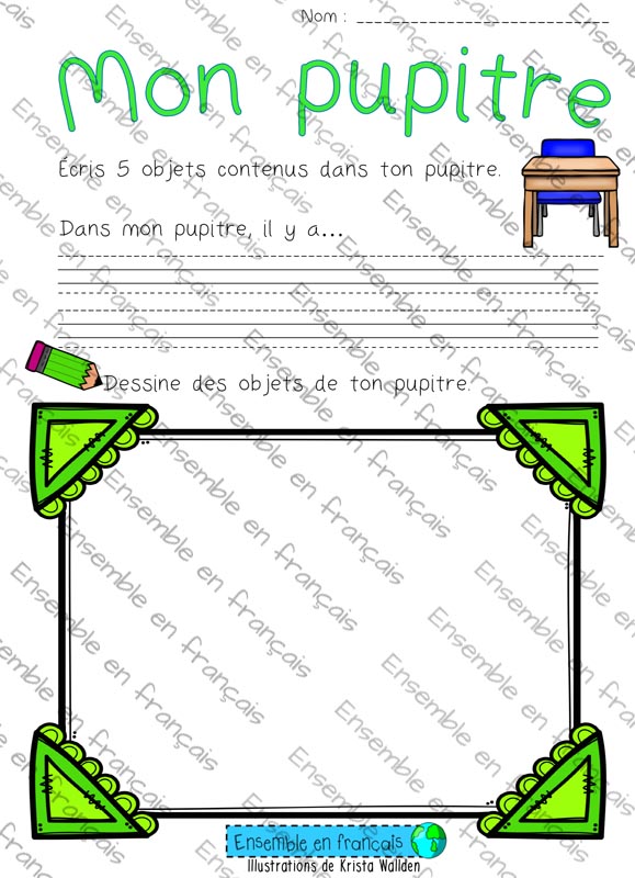 Galerie Écris 5 objets contenus dans ton pupitre 02. Matériel scolaire, Débutant Écris 5 objets contenus dans ton pupitre Télécharger ensembleenfrancais-admin 2019-07-08T13:16:18-05:00 02. Matériel scolaire, Débutant|