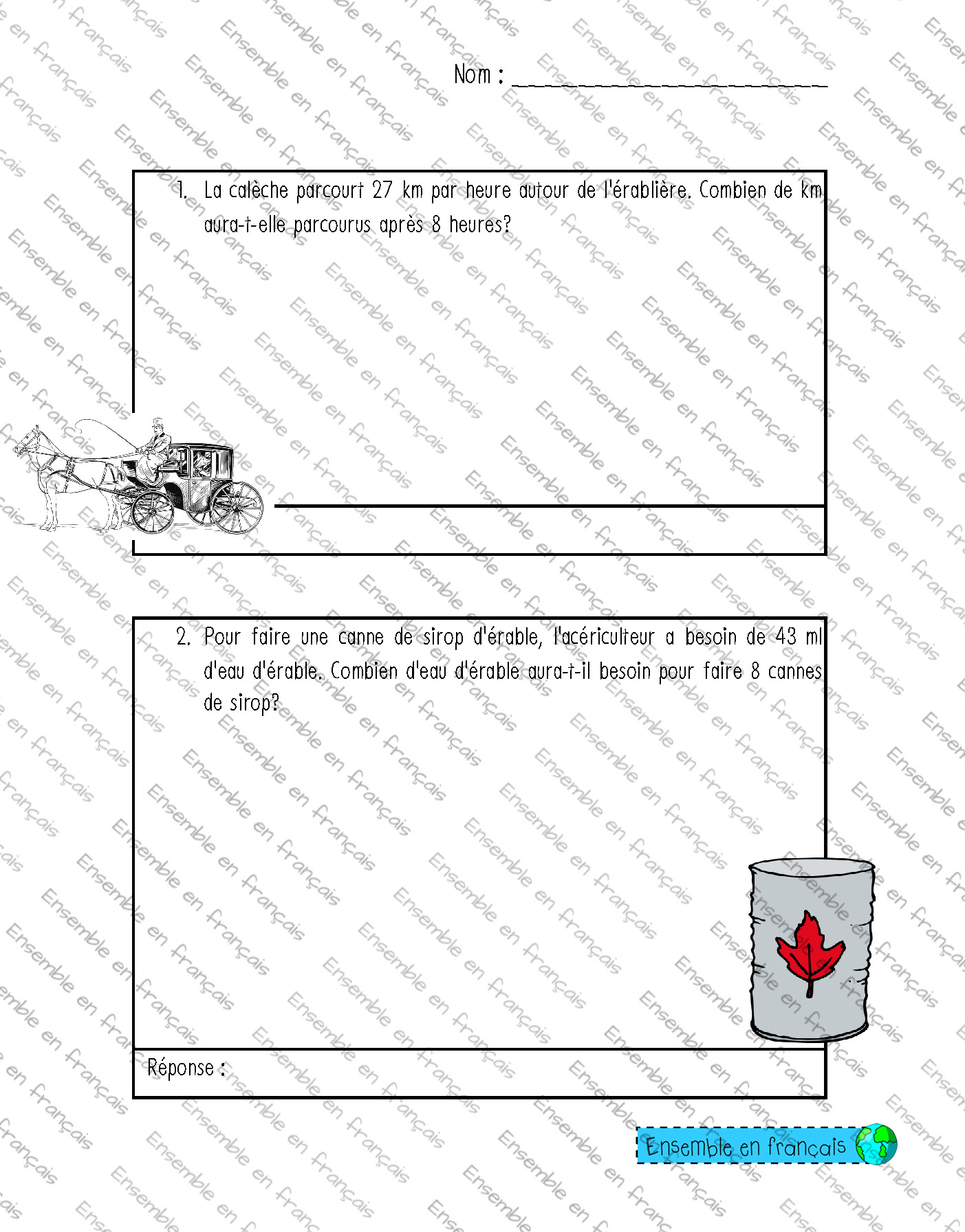 1ère – problèmes math 20 Télécharger ensembleenfrancais-admin 2020-03-04T13:24:24-05:00 20. Cabane à sucre, Avancé|