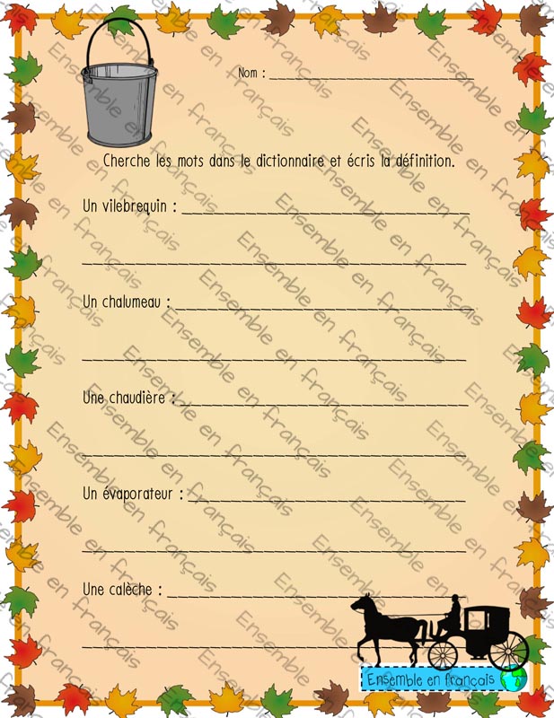 Galerie Cherche les mots dans le dictionnaire et écris la définition 20. Cabane à sucre, Avancé Cherche les mots dans le dictionnaire et écris la définition Télécharger ensembleenfrancais-admin 2019-07-16T09:07:10-05:00 20. Cabane à sucre, Avancé|