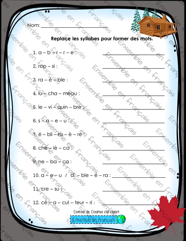 Galerie Replace les syllabes pour former des mots 20. Cabane à sucre, Débutant Replace les syllabes pour former des mots Télécharger ensembleenfrancais-admin 2019-07-16T06:27:57-05:00 20. Cabane à sucre, Débutant|