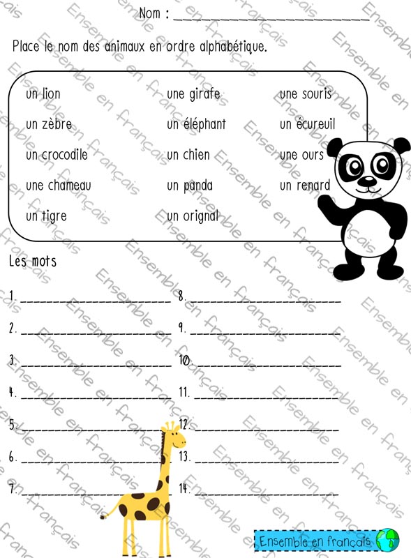 Galerie Place le nom des animaux en ordre alphabétique – Inter 22. Animaux, Intermédiaire Place le nom des animaux en ordre alphabétique – Inter Télécharger ensembleenfrancais-admin 2019-07-16T13:37:53-05:00 22. Animaux, Intermédiaire|