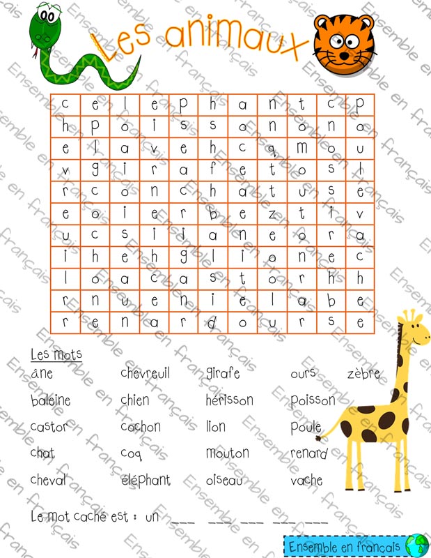 Galerie Mots cachés – Les animaux 22. Animaux, Intermédiaire Mots cachés – Les animaux Télécharger ensembleenfrancais-admin 2019-07-19T10:43:52-05:00 22. Animaux, Intermédiaire|