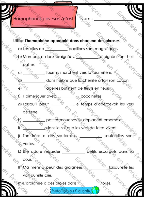 Galerie Homophones ces-ses-c’est 23. Insectes, Avancé Homophones ces-ses-c’est Télécharger ensembleenfrancais-admin 2019-07-16T17:54:15-05:00 23. Insectes, Avancé|