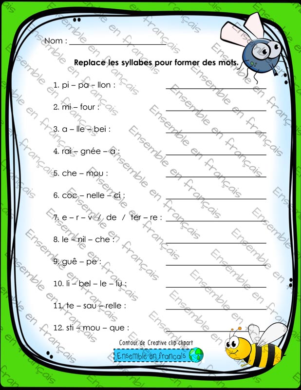 Galerie Replace les syllabes pour former des mots 23. Insectes, Débutant Replace les syllabes pour former des mots Télécharger ensembleenfrancais-admin 2019-07-16T16:16:11-05:00 23. Insectes, Débutant|