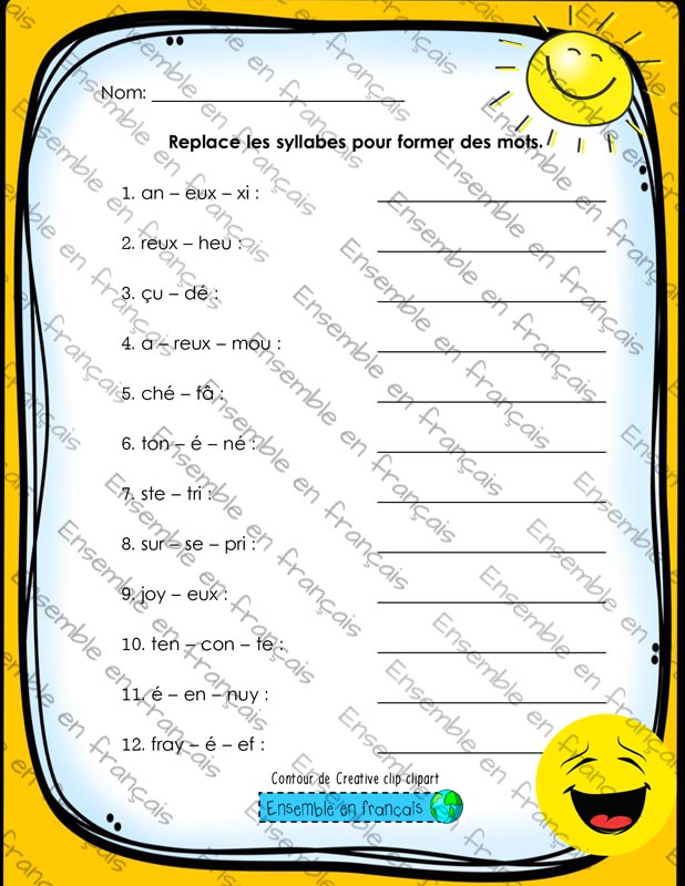 Galerie Replace les syllabes pour former des mots 24. Émotions, Débutant Replace les syllabes pour former des mots Télécharger ensembleenfrancais-admin 2019-07-16T18:04:01-05:00 24. Émotions, Débutant|