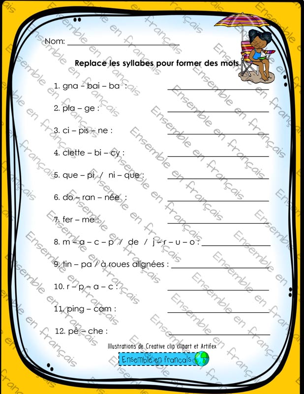 Galerie Replace les syllabes pour former des mots 25. Été, Débutant Replace les syllabes pour former des mots Télécharger ensembleenfrancais-admin 2019-07-17T07:45:58-05:00 25. Été, Débutant|