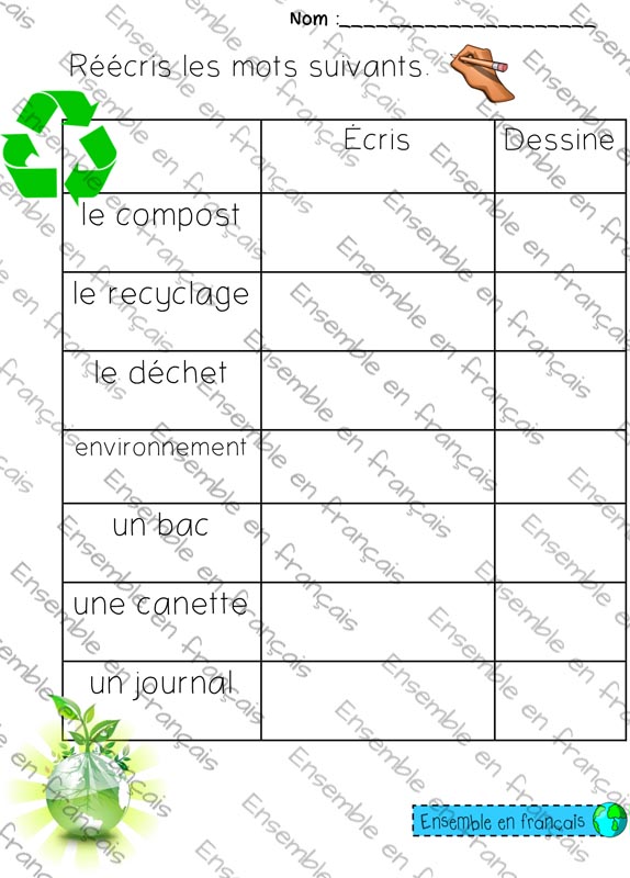Galerie Réécris les mots suivants 26. Environnement, Débutant Réécris les mots suivants Télécharger ensembleenfrancais-admin 2019-07-17T13:44:58-05:00 26. Environnement, Débutant|
