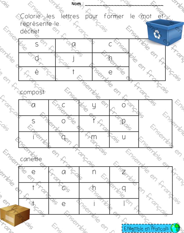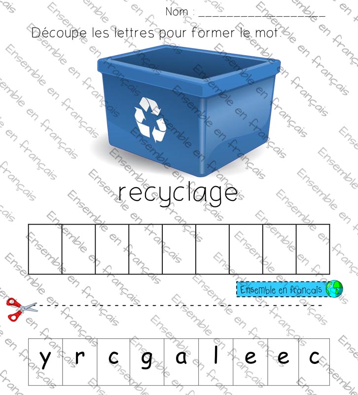 Galerie Découpe les lettres pour former le mot – Recyclage 26. Environnement, Débutant Découpe les lettres pour former le mot – Recyclage Télécharger ensembleenfrancais-admin 2019-07-17T12:49:19-05:00 26. Environnement, Débutant|