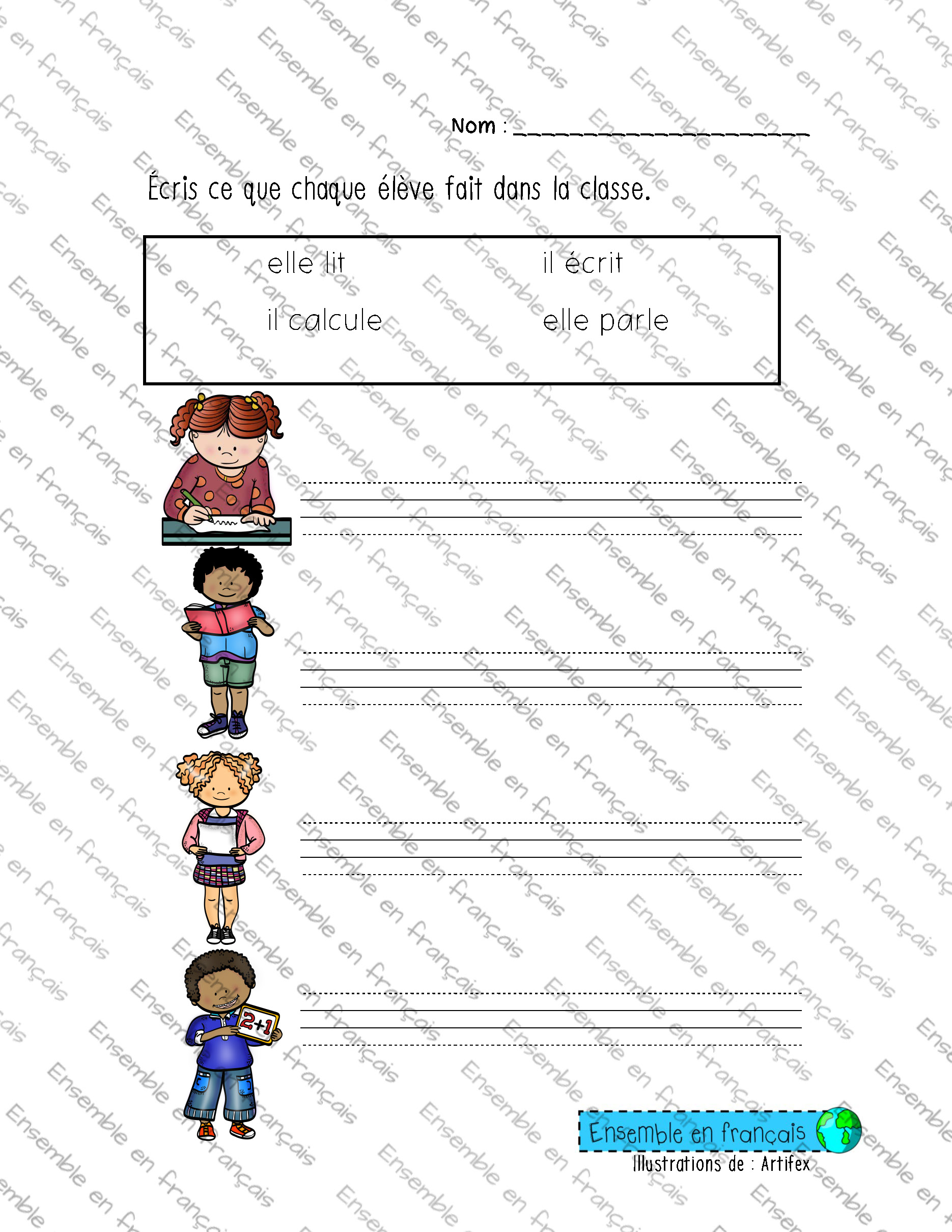 Galerie Écris ce que chaque élève fait dans la classe – Déb 03. Classe, Débutant Écris ce que chaque élève fait dans la classe – Déb Télécharger ensembleenfrancais-admin 2019-07-23T14:55:43-05:00 03. Classe, Débutant|