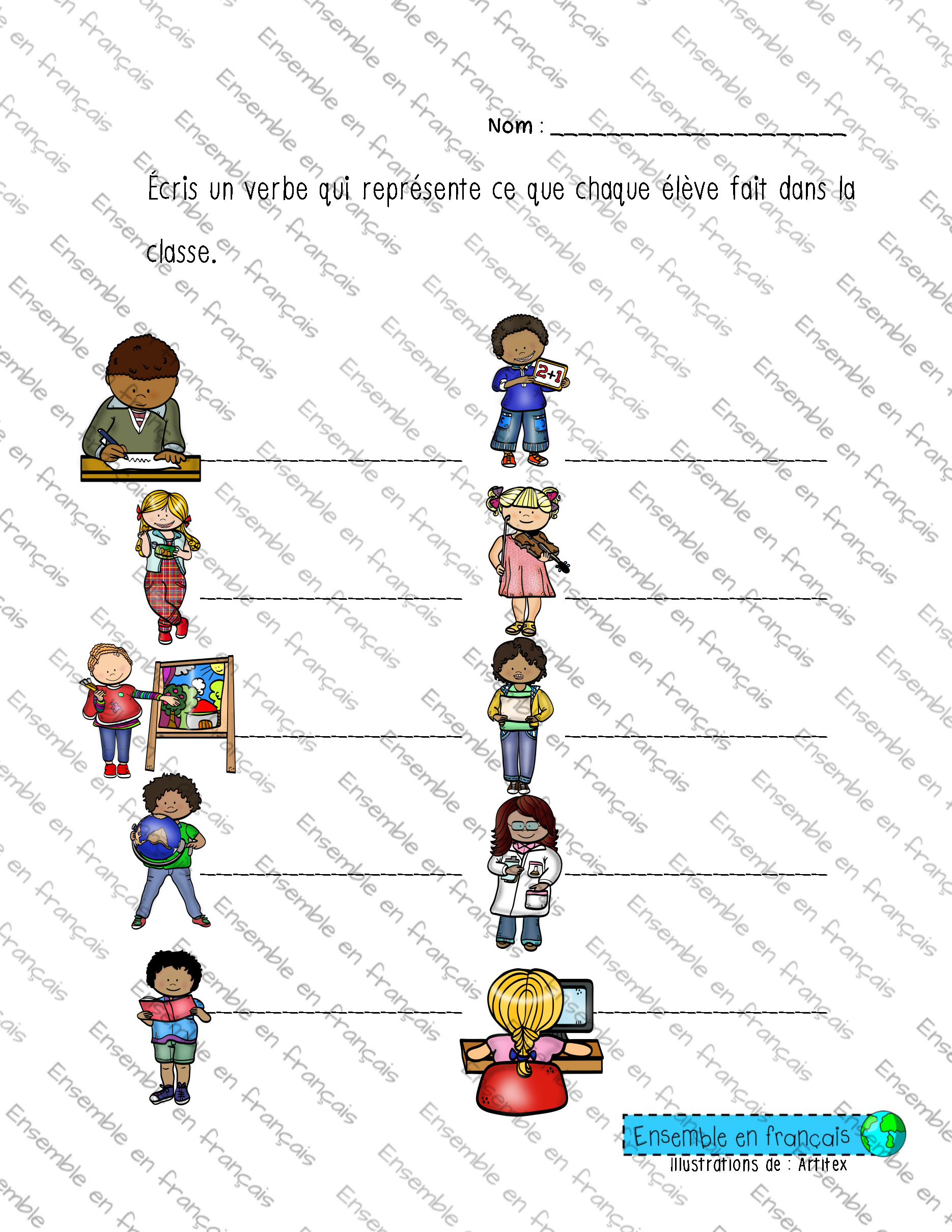 Galerie Écris un verbe qui représente ce que chaque élève fait dans la classe – Inter 03. Classe, Intermédiaire Écris un verbe qui représente ce que chaque élève fait dans la classe – Inter Télécharger ensembleenfrancais-admin 2019-07-23T14:56:39-05:00 03. Classe, Intermédiaire|