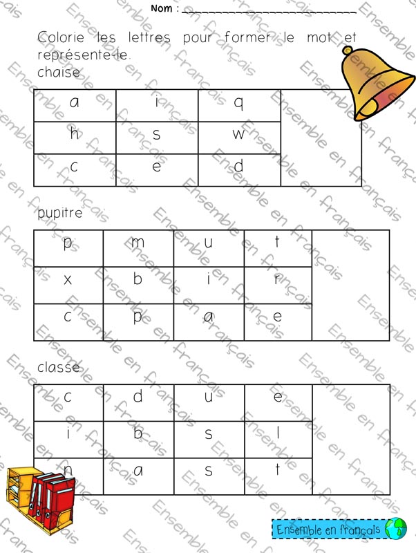 Galerie Colorie les lettres pour former le mot 03. Classe, Débutant Colorie les lettres pour former le mot Télécharger ensembleenfrancais-admin 2019-07-08T19:48:44-05:00 03. Classe, Débutant|