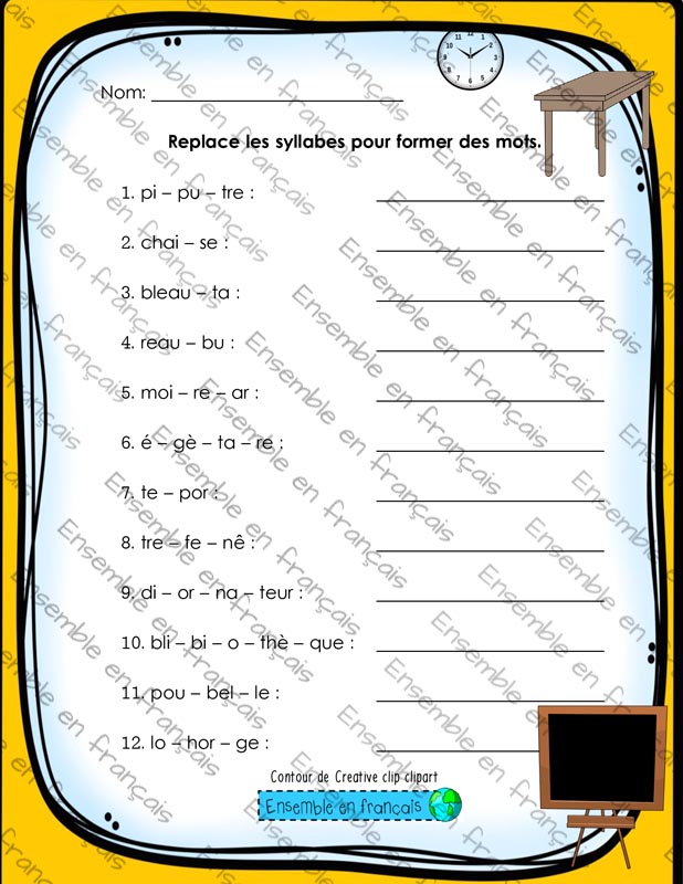 Galerie Replace les syllabes pour former des mots 03. Classe, Débutant Replace les syllabes pour former des mots Télécharger ensembleenfrancais-admin 2019-07-14T10:30:17-05:00 03. Classe, Débutant|
