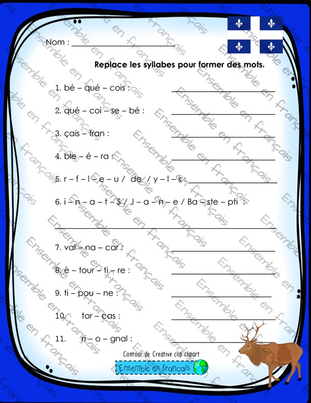 Galerie Replace les syllabes pour former des mots 30. Québec, Débutant Replace les syllabes pour former des mots Télécharger ensembleenfrancais-admin 2020-06-17T14:54:12-05:00 30. Québec, Débutant|
