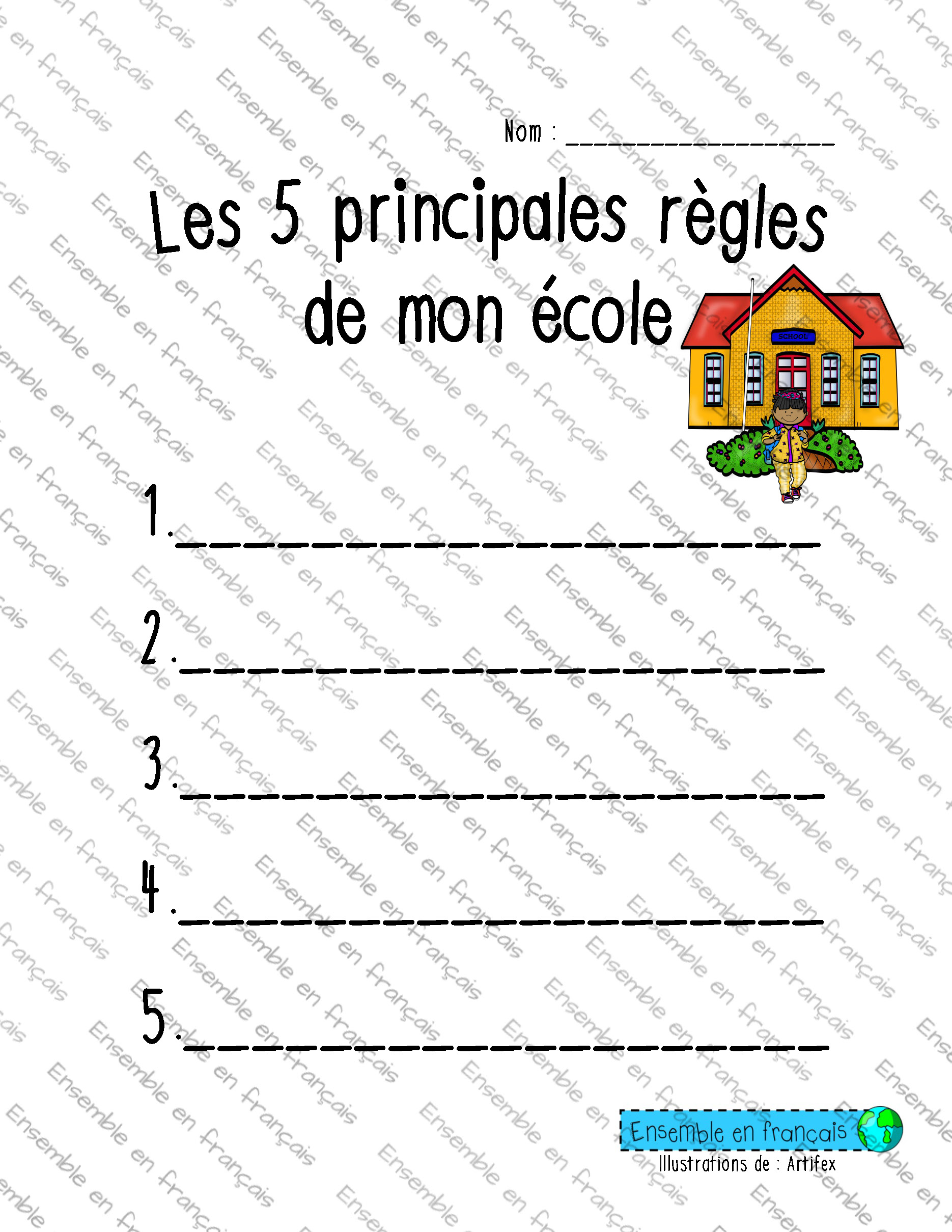 Galerie Les principales règles de mon école 04. L'école, Intermédiaire Les principales règles de mon école Télécharger ensembleenfrancais-admin 2019-07-23T15:05:36-05:00 04. L'école, Intermédiaire|
