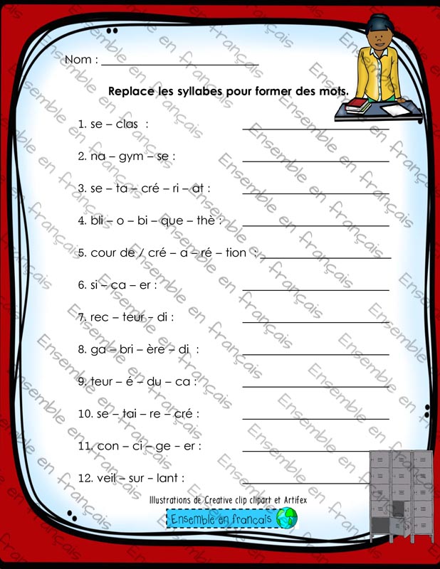 Galerie Replace les syllabes pour former des mots 04. L'école, Débutant Replace les syllabes pour former des mots Télécharger ensembleenfrancais-admin 2019-07-14T10:31:26-05:00 04. L'école, Débutant|