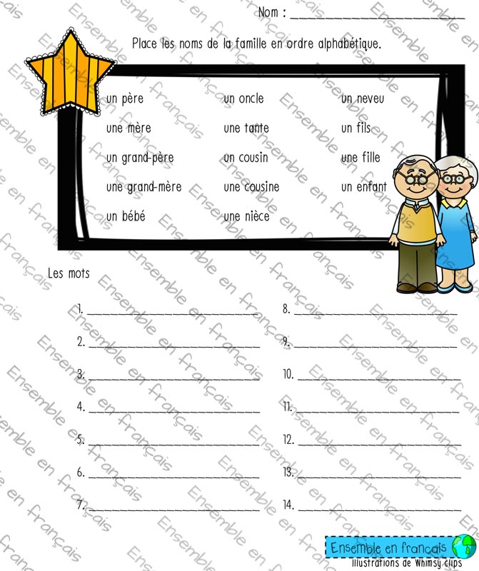 Galerie Place le nom de la famille en ordre alphabétique – Inter 05. La famille, Intermédiaire Place le nom de la famille en ordre alphabétique – Inter Télécharger ensembleenfrancais-admin 2019-07-09T19:45:19-05:00 05. La famille, Intermédiaire|