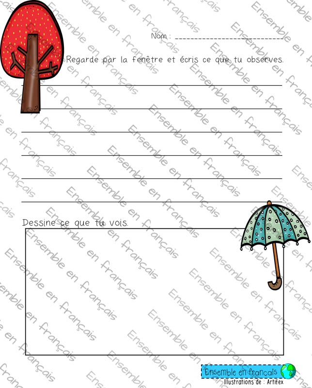 Galerie Regarde par la fenêtre et écris ce que tu observes 06. Automne, Intermédiaire Regarde par la fenêtre et écris ce que tu observes Télécharger ensembleenfrancais-admin 2019-07-10T09:21:33-05:00 06. Automne, Intermédiaire|