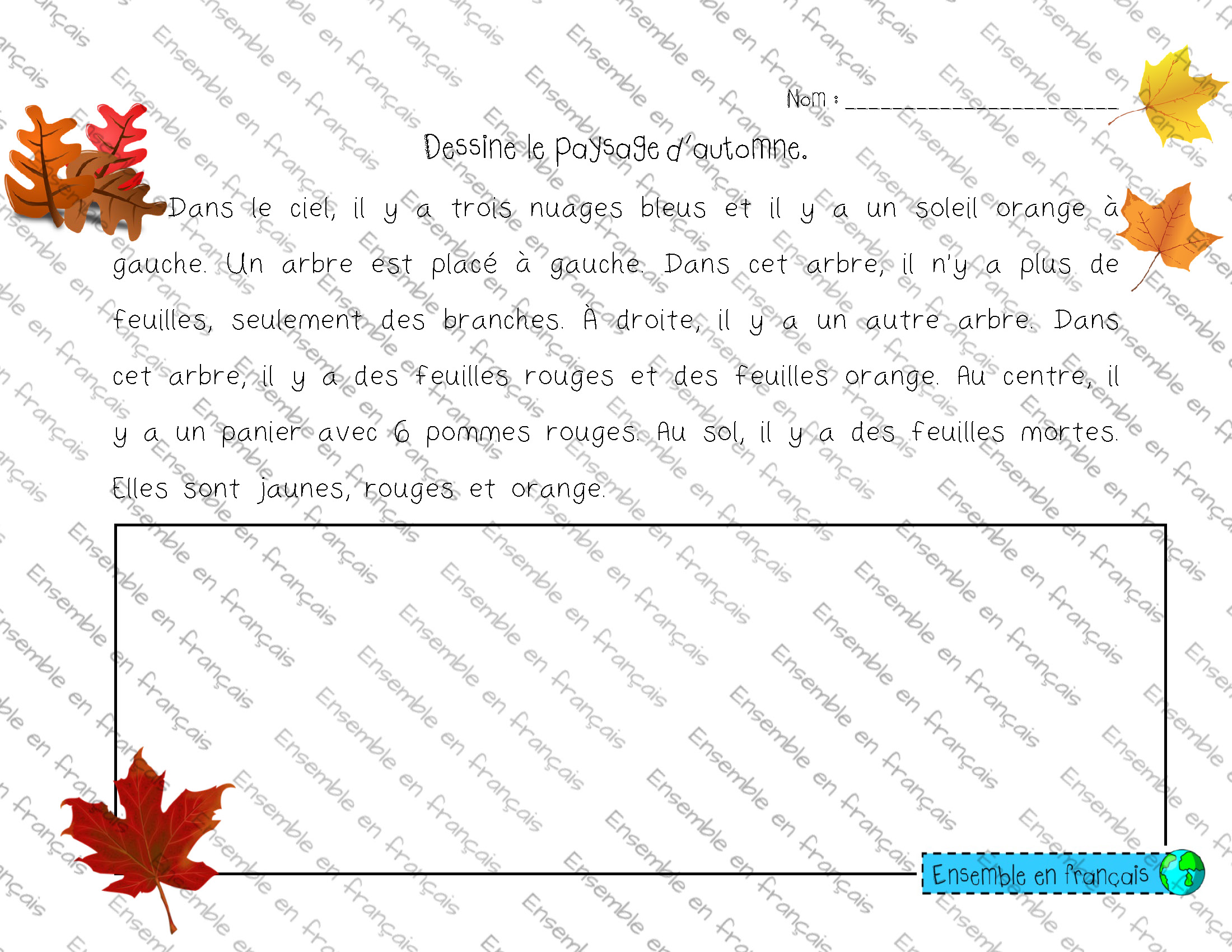 Galerie Écris un changement qui se produit à l’automne 06. Automne, Débutant Écris un changement qui se produit à l’automne Télécharger ensembleenfrancais-admin 2019-07-10T08:06:21-05:00 06. Automne, Débutant|