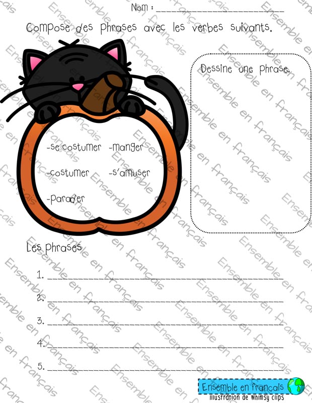 Galerie Compose des phrases avec les verbes suivants 09. Halloween, Intermédiaire Compose des phrases avec les verbes suivants Télécharger ensembleenfrancais-admin 2019-07-10T19:41:02-05:00 09. Halloween, Intermédiaire|