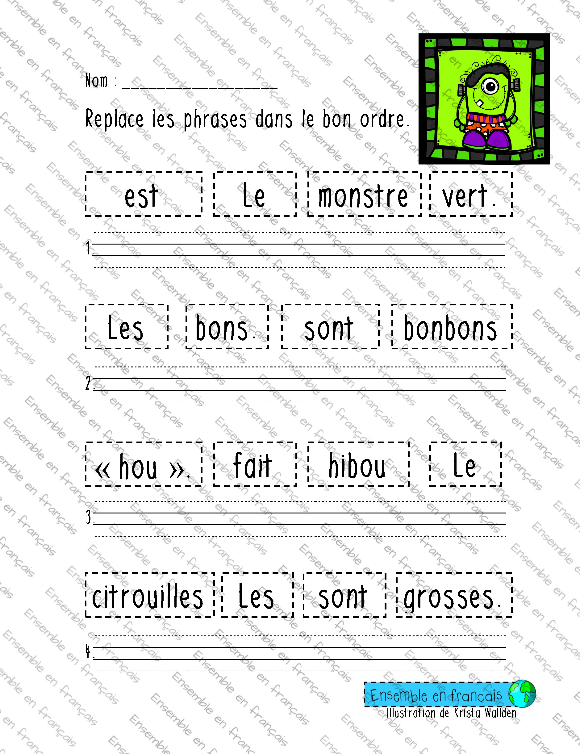 Galerie Replace les phrases dans le bon ordre 09. Halloween, Intermédiaire Replace les phrases dans le bon ordre Télécharger ensembleenfrancais-admin 2019-07-10T14:40:31-05:00 09. Halloween, Intermédiaire|