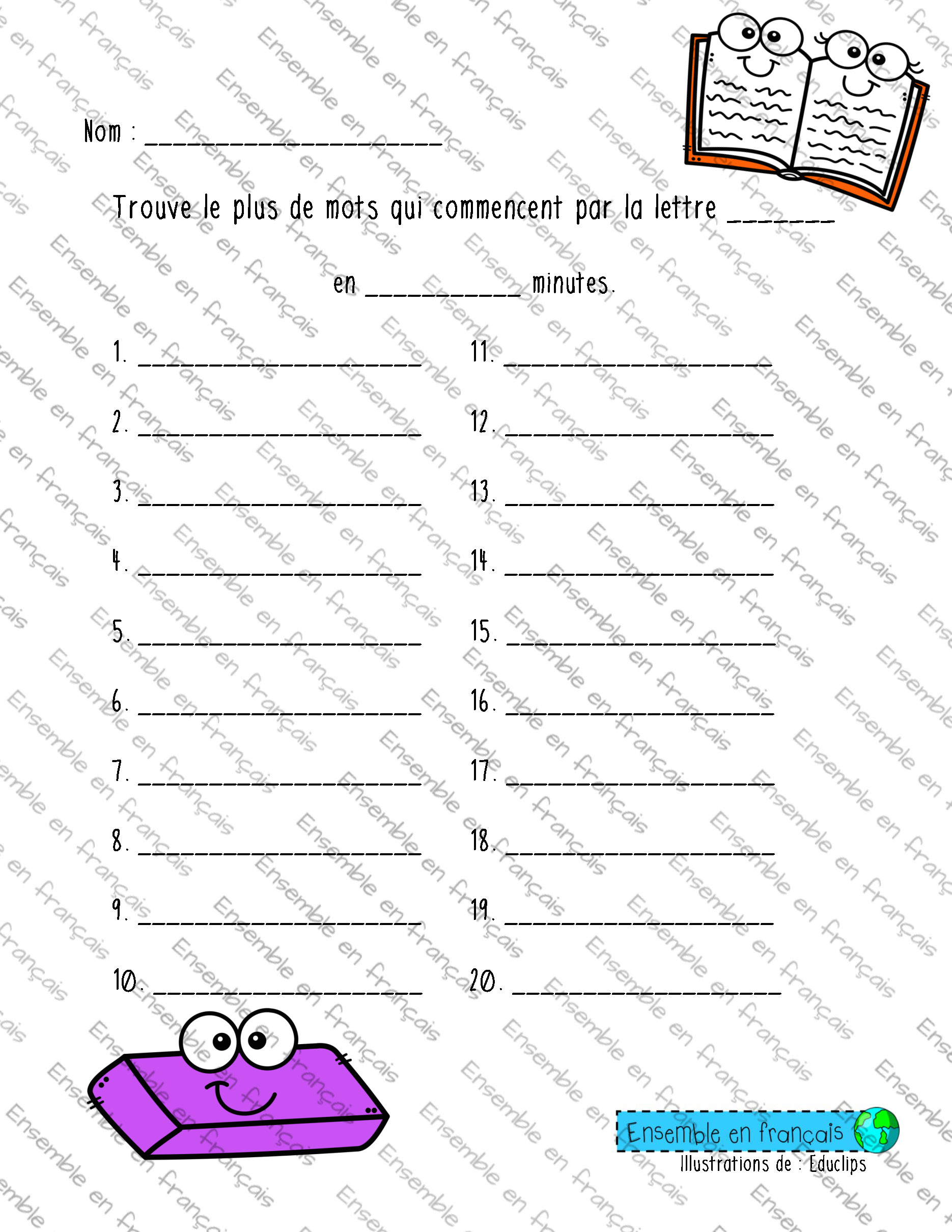 Galerie Trouve le plus de mots qui commencent par la lettre Alphabet, Intermédiaire Trouve le plus de mots qui commencent par la lettre Télécharger ensembleenfrancais-admin 2019-07-19T11:11:58-04:00 Alphabet, Intermédiaire|